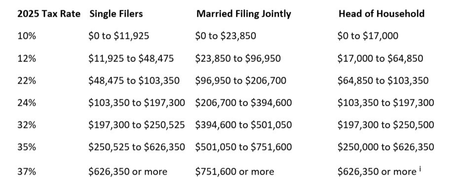 More tax rate information for 2025: